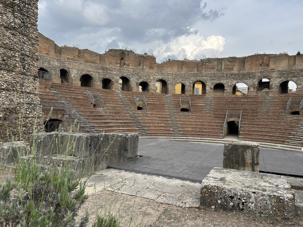 Fu realizzato agli inizi del XII secolo da uno sconosciuto scultore detto il Maestro dei Mesi». Il chiostro di S. Sofia è Patrimonio Unesco dal 2011 e fa parte del sito seriale I Longobardi in Italia. I luoghi del potere, così come l’altro monumento tutelato dall’Unesco in città, l’Arco di Traiano, fa parte del sito Via Appia Regina Viarum. Eretto nel 117, alto poco più di 15 metri e fittamente decorato a bassorilievo, è l’arco romano meglio conservato d’Italia. A pochi decenni prima risale l’anfiteatro romano di Benevento, ritrovato solo nel 1985 poco fuori dalla cinta muraria medievale.