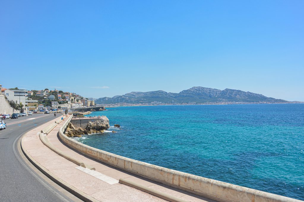 È all'uscita da Malmousque che la Corniche Kennedy rivela tutta la sua magnificenza. La pista ciclabile, nuova e protetta dal traffico, offre un panorama ininterrotto che si estende fino all'orizzonte.
