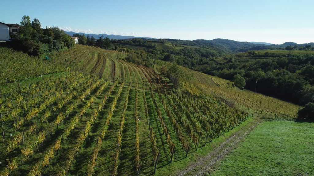 Le vigne si trovano a un’altitudine compresa tra i 150 e i 200 metri, dove la terra è particolarmente pietrosa. I suoli poco fertili fanno sì che nascano grappoli più piccoli e con una maggior concentrazione aromatica. Grazie al vento, i grappoli della ribolla gialla restano sempre asciutti e sani.