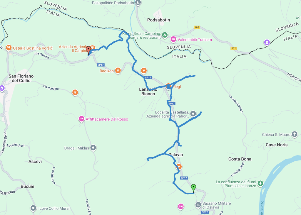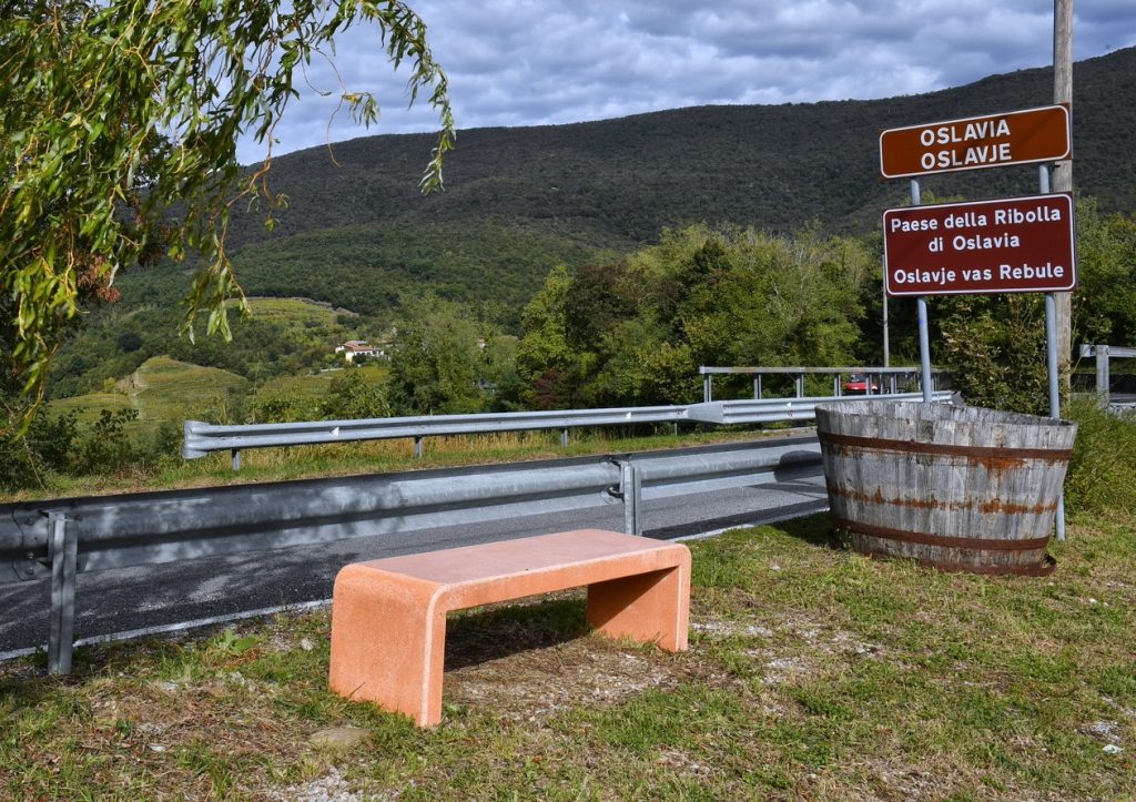 In questa terra che 110 anni fa era dilaniata dalle bombe, oggi il vino è un elemento di unione e di eredità culturale, di racconto e di condivisione. E qui è nato un sentiero, il sentiero della Ribolla gialla di Oslavia. Nel 2021 i produttori hanno deciso di aprire le loro terre ai visitatrori, che fossero appassionati di vino o semplici escursionisti. Hanno creato un cammino lungo circa 5 km che attraversa vigneti e cantine, e questo cammino contiene sette piccole panchine di colore arancione (come gli Orange Wine), semplici, quasi spoglie. Ognuna è stata collocata in un punto che secondo il produttore permette di godere al meglio del paesaggio circostante, che sia Gorizia, a due passi, il Collio, il Sabotino.