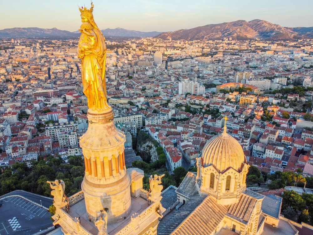 Calcolate di arrivare a Notre-Dame-de-la-Garde verso le quattro e quarantacinque per il tramonto. Il bus 60 dalla Canebière vi porta in quindici minuti sulla collina che domina Marsiglia da centosessantadue metri d'altezza. La basilica romanico-bizantina, con la sua statua dorata della Vergine alta quasi dieci metri, è il faro spirituale della città da più di un secolo.