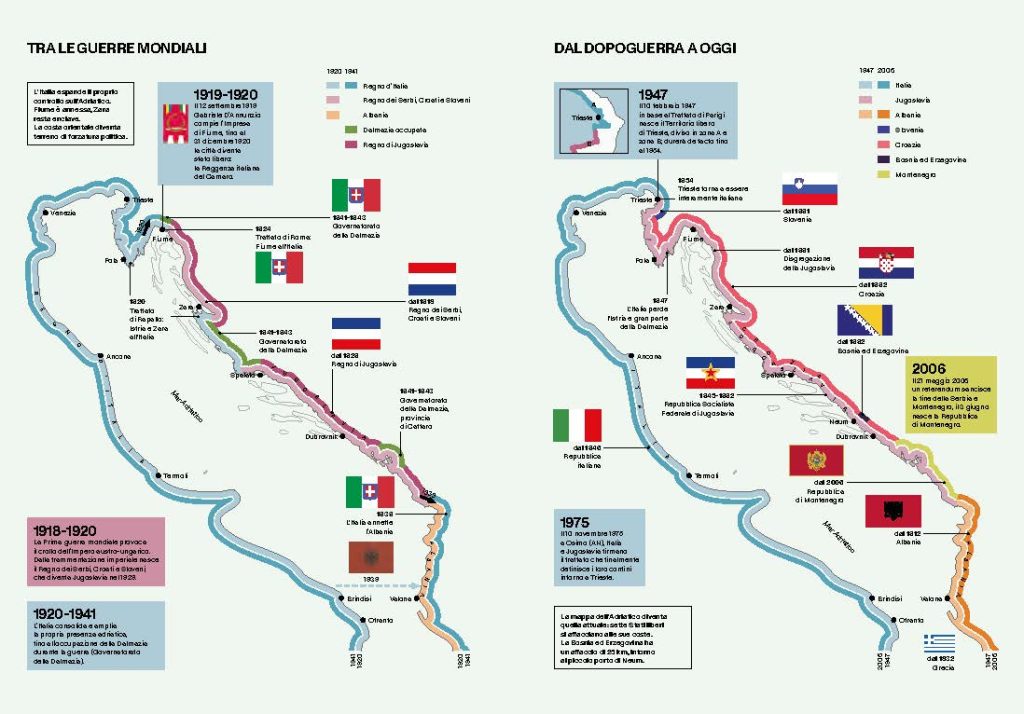 Equivalente allo stato liquido della penisola italiana, per secoli lago di Venezia, l’Adriatico è uno spazio storico transnazionale oggi condiviso da sette Paesi. Un mare che sta in mezzo, divide, ma in realtà unisce. Mare “per eccellenza” fin dai tempi di Orazio, luogo ancora