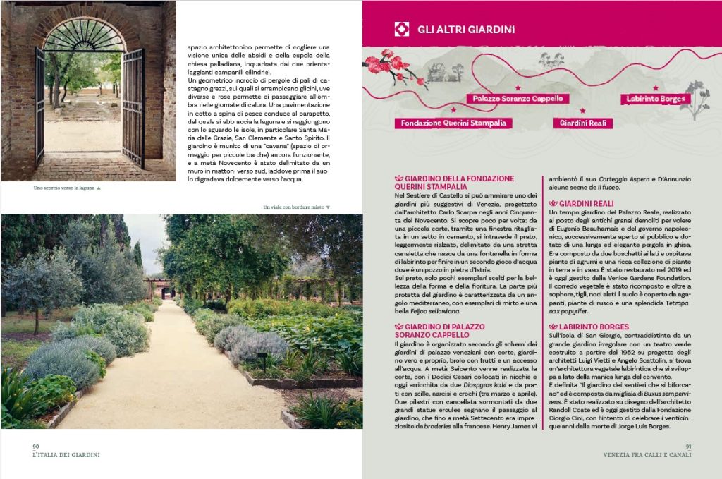 Chissà se mai lo scrittore americano di Giro di Vite e Ritratto di Signora, si sarebbe concesso il piacere di sfogliare l’Italia dei Giardini. Ci piace pensarlo assorto nella lettura, con la sua adorata Venezia per una volta sullo sfondo, ammaliato dai più bei giardini italiani. Perché nel nuovo suggestivo volume della nostra collana dedicata ai Piaceri del Viaggio se ne scoprono oltre trecento, da quelli monumentali alle raccolte botaniche, dai parchi storici ai giardini segreti nei centri urbani: 52 proposte, idealmente una a settimana per poter scegliere in un anno intero in base alle stagioni e ai gusti, ritrovando il legame tra paesaggio, cultura e natura.