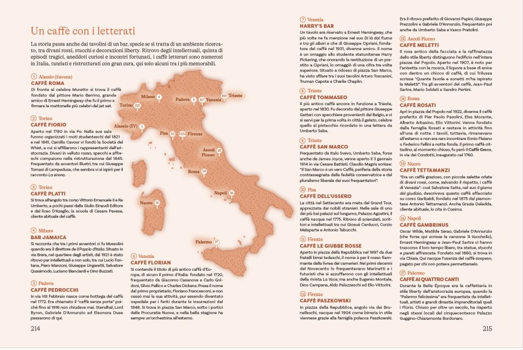 Inoltre tre mappe dell'Italia raccolgono cimiteri, musei e caffè letterari, luoghi da non perdere nel prossimo viaggio.