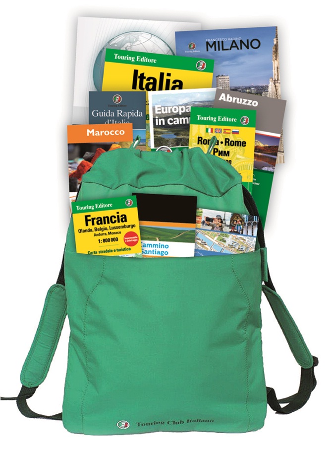 A tutti i soci che acquistano almeno 32 euro in pubblicazioni dal catalogo Touring subito in regalo un bellissimo zaino realizzato da Tucano per il Touring Club.
