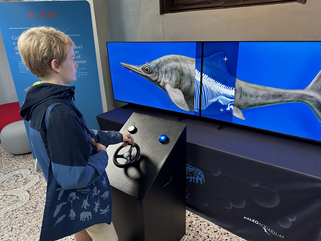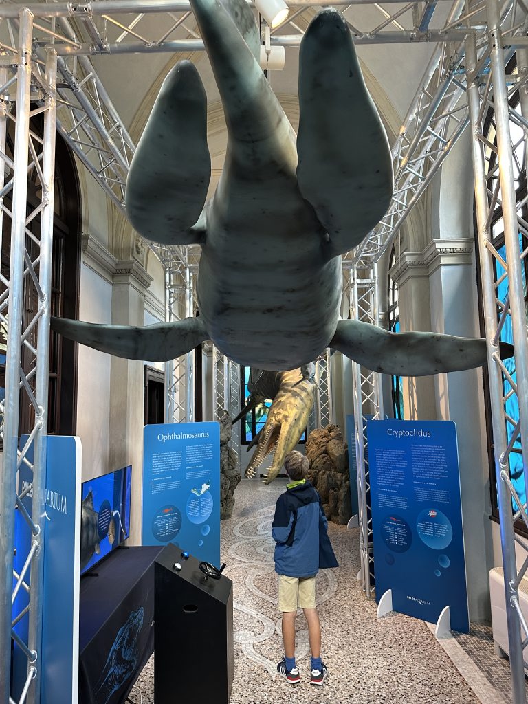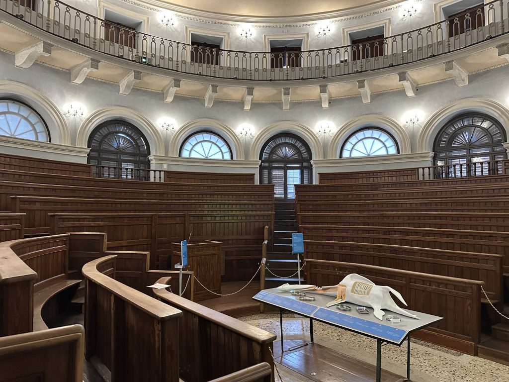 Così, consigliamo a tutti la visita a "Oceani perduti. Giganti marini al tempo dei dinosauri", che peraltro rimarrà visitabile per un lungo periodo, fino al 28 giugno 2026. E non solo alle famiglie con bambini, che naturalmente rimarranno entusiasti di trovarsi al cospetto di un plesiosauro o di un mosasauro e passeranno ore a giocare davanti alle diverse postazioni interattive disseminate tra le sale. Tutti possono imparare qualcosa da questa mostra: c'è chi sarà interessato dagli aspetti scientifici, chi apprezzerà la raffinatezza artistica dei modelli, chi rimarrà affascinato da un aspetto non secondario: l'esposizione è realizzata presso Palazzo Botta, sede storica della facoltà di Scienze Naturali dell'Università di Pavia, oggigiorno trasformata in polo museale. Esplorando le diverse sezioni degli oceani perduti, si entra quindi in stanze dal fascino suggestivo e in particolare nel Teatro anatomico, l'aula dedicata a Lazzaro Spallanzani, dove in un tocco di genio dei curatori il professor Steno (un ittiosauro) spiega l'anatomia dei plesiosauri analizzandone una carcassa parzialmente sezionata (laddove un tempo erano posizionati i cadaveri utilizzati per le lezioni di anatomia).