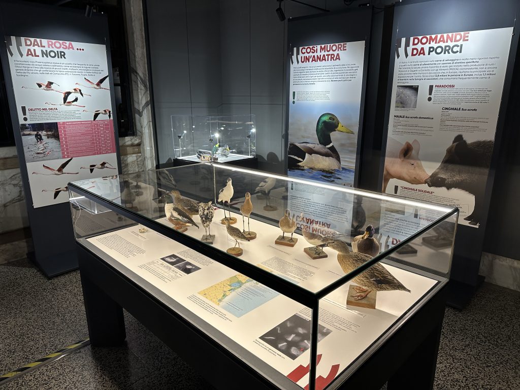 "Ogni anno, nell’Unione Europea, l’attività venatoria disperde oltre 14.000 tonnellate di piombo nell’ambiente: un metallo che può permanere nel suolo fino ad un secolo" spiega Bassi, che ha curato l'esposizione insieme a Gloria Ramello, Paolo Pantini e Giorgio Chiozzi (con la collaborazione del Museo di Scienze Naturali “E. Caffi” di Bergamo e della Società Italiana di Scienze Naturali). "Ogni cartuccia contiene circa 470 pallini, la maggior parte dei quali finisce nell'ambiente. Gli uccelli acquatici come i fenicotteri lo ingeriscono accidentalmente, mentre rapaci e uccelli che si cibano di carogne, come gli avvoltoi, lo assumono nutrendosi di prede o carcasse contaminate. Secondo l’European Chemical Agency, ogni anno 2,3 milioni di uccelli muoiono per intossicazione da piombo nell'Unione Europea".