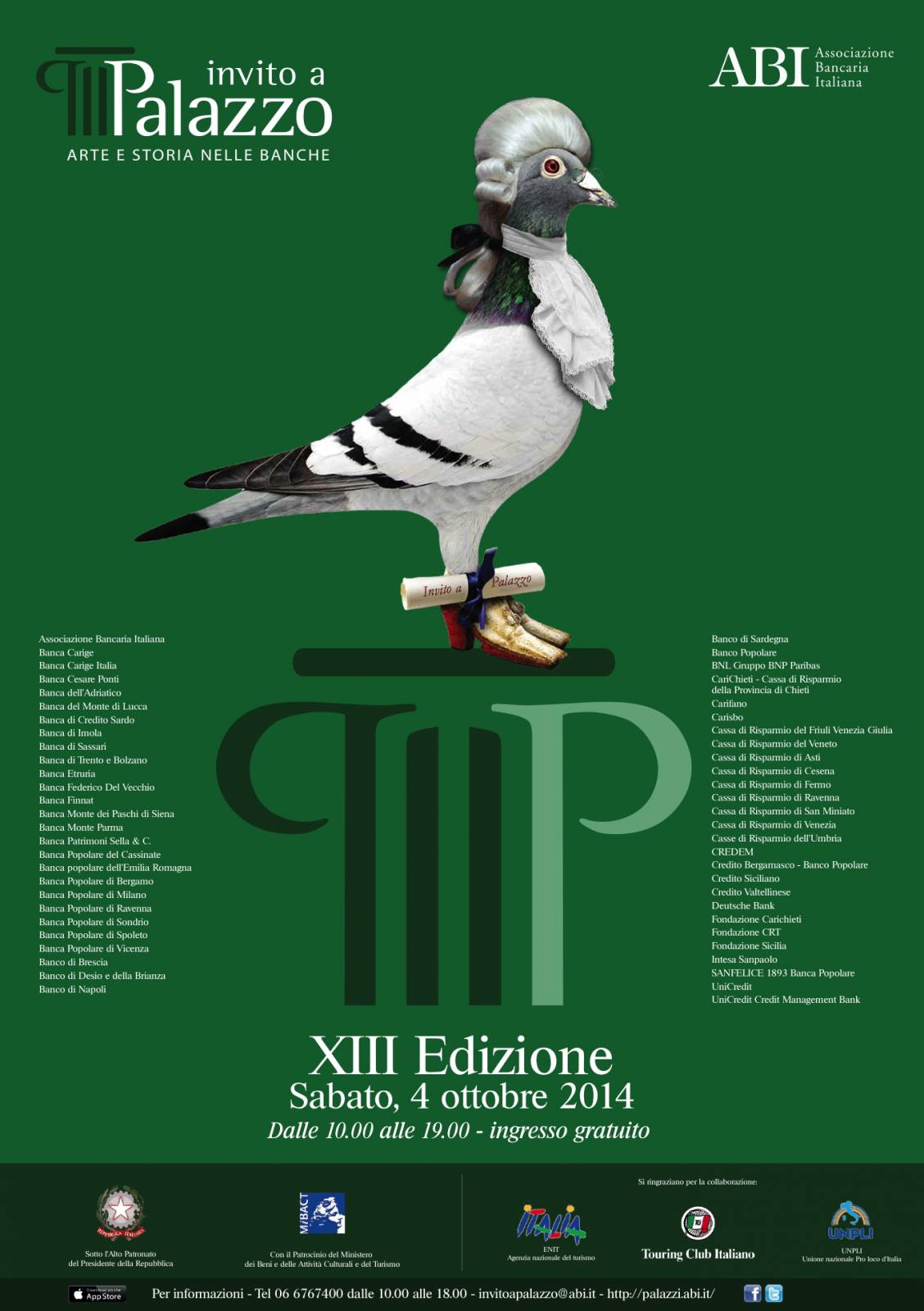 La XIII edizione di Invito a palazzo “si inserisce nella costellazione d'interventi pubblici e privati che costituiscono il sistema Italia per la promozione di arte e cultura”, spiega il presidente dell'Abi Antonio Pautelli e prosegue: “Il settore bancario, infatti, nel solco della lunga tradizione che risale al mecenatismo rinascimentale, è da sempre impegnato al fianco degli altri attori economici per valorizzare il patrimonio artistico nazionale, che rappresenta una delle leve stategiche per far tornare l'Italia sul sentiero della crescita”.