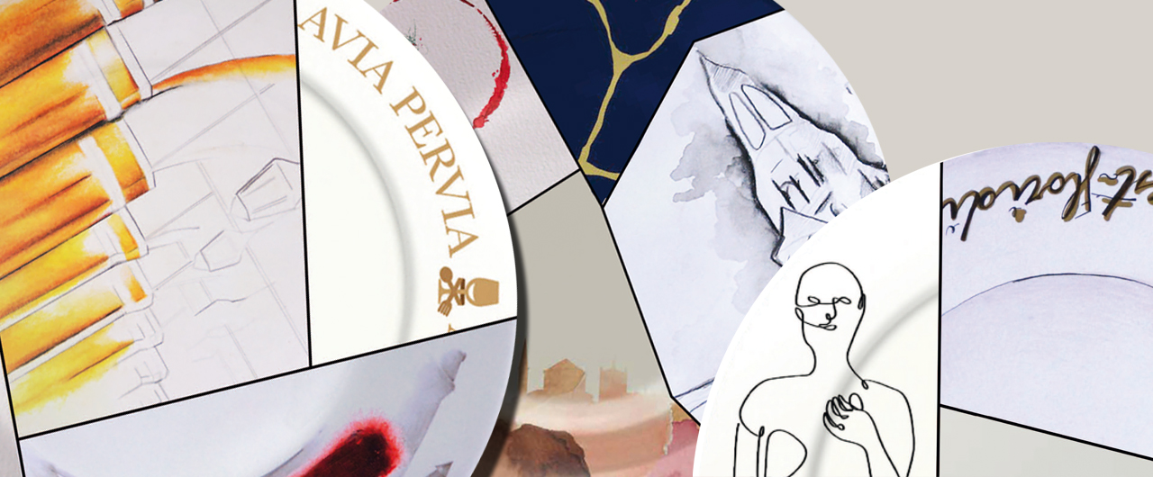 I protagonisti sono i piatti in ceramica disegnati dagli studenti di Arte della Ceramica delle classi quarte e quinte degli indirizzi di Design della Ceramica e Grafica dell’Istituto A. Venturi. Agli studenti è stato chiesto di ritrarre sui piatti di ceramica la città di Modena e le sue eccellenze enogastronomiche, il belcanto e i motori, il Sito Unesco e i monumenti, i colori e le forme che richiamano Modena ed il suo stemma; la progettazione e relativa realizzazione dei piatti è stata commissionata dalla società Palatipico attraverso il marchio d’area Piacere Modena, cui aderiscono i principali consorzi del territorio. Ne sono risultati in totale 96 progetti, nei quali emerge l’impegno in termini di creatività e di abilità nella comunicazione grafica, progettazione e ricerca.