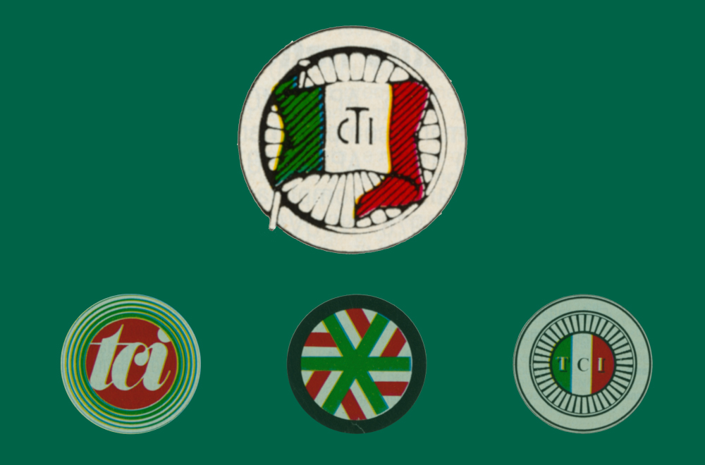 La sigla cambia da CTI (Consociazione Turistica Italiana) a TCI, ridisegnata in caratteri sobri e rotondi.
