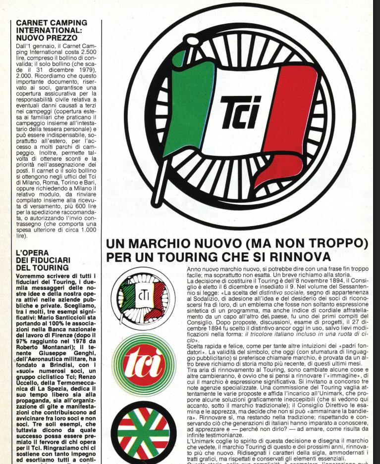 Sul mensile Qui Touring del gennaio 1979, il nuovo marchio viene presentato ai soci con un titolo che suona ancora oggi come un manifesto di design: "Un marchio nuovo (ma non troppo) per un Touring che si rinnova". Non una rivoluzione. Un'evoluzione consapevole.