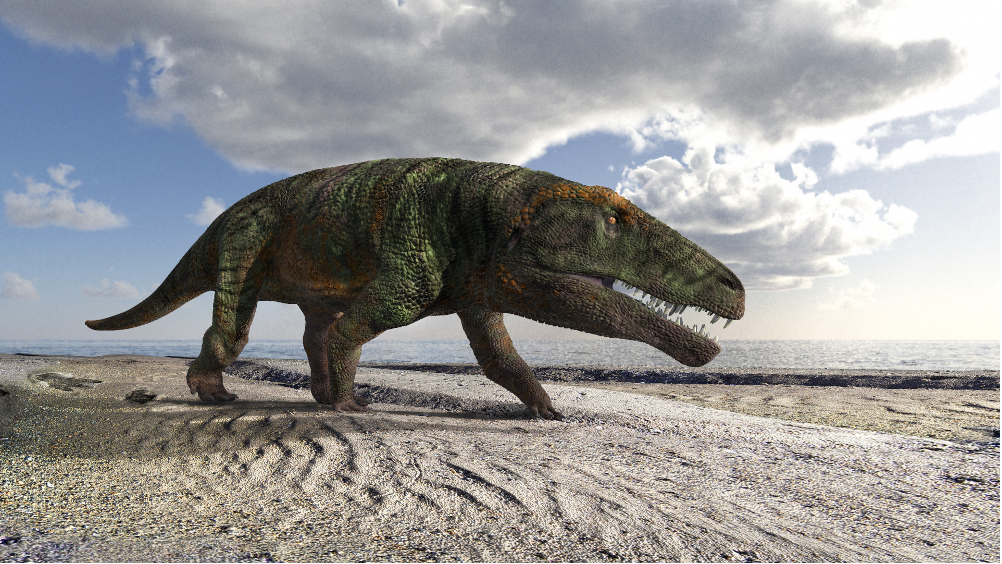 Ipotetica ricostruzione dell’organismo che ha lasciato le impronte attribuite alla nuova icnospecie Isochirotherium gardettensis. Per gentile concessione di Fabio Manucci