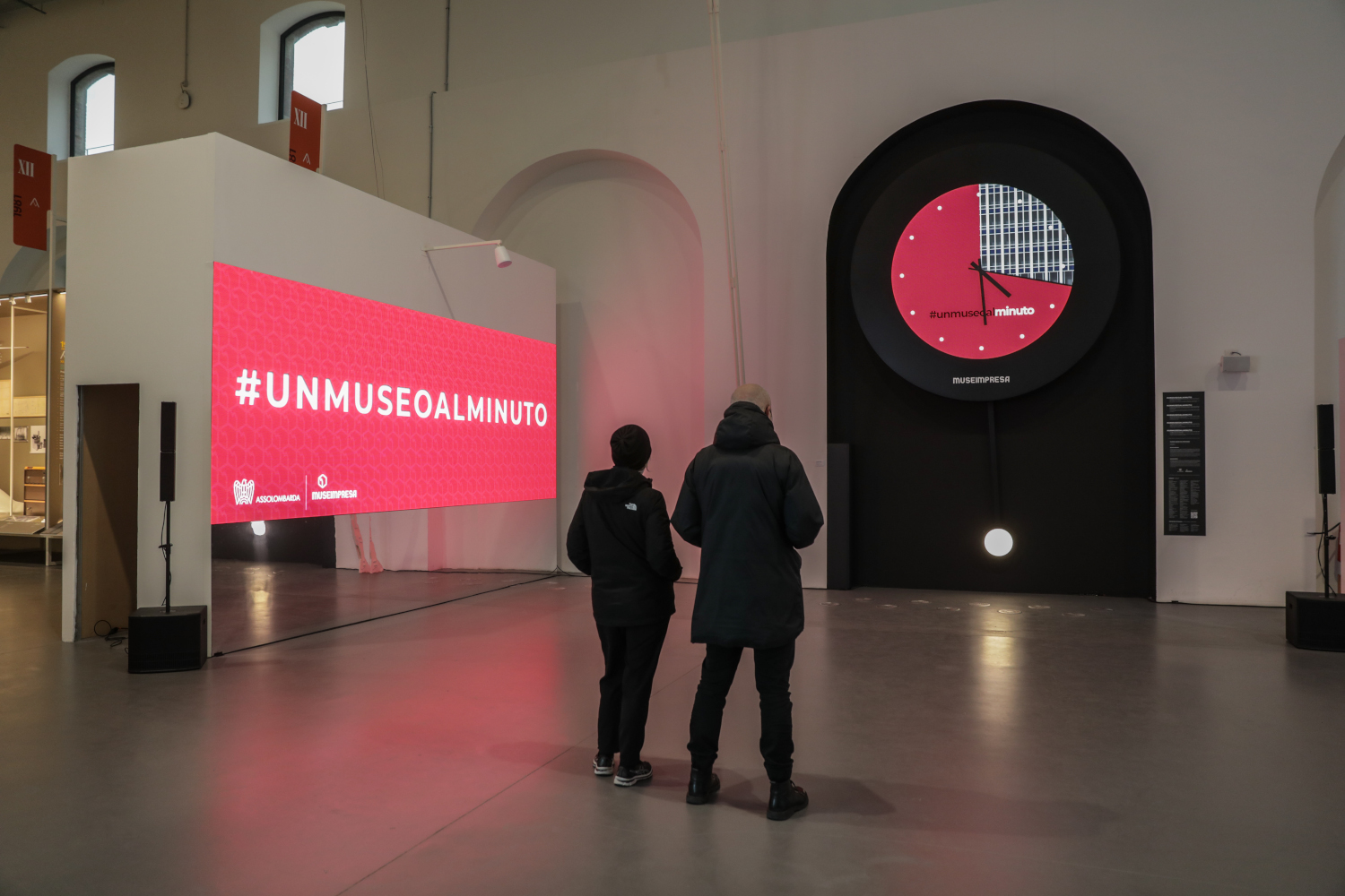 #unmuseoalminuto, progettato da NEO [Narrative Enviromnets Operas], valorizza in modo immediato e visivo i musei e gli archivi d’impresa, luoghi che conservano oggetti e documenti per raccontare storie straordinarie, di donne e uomini che, consapevoli della dignità del fare impresa, hanno inventato, sperimentato, prodotto, costruito benessere, lavoro, bellezza e inclusione sociale. Ogni museo è rappresentato da un’immagine identitaria che si alterna, ogni minuto, a quelle degli altri musei e archivi sul quadrante di un grande orologio, metafora della stratificazione nel tempo della cultura di impresa. Per il Touring c'è la ruota della bicicletta, suo simbolo e logo dal 1894.