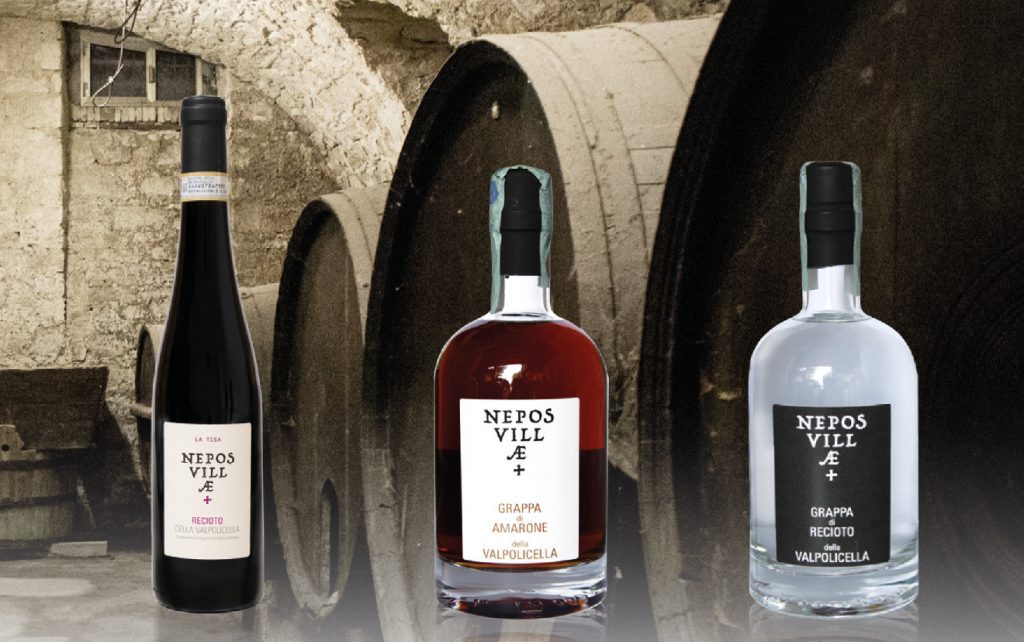 La Grappa di Amarone, morbida, barricata e affinata al caramello e quella di recioto, bianca e secca, sono la degna conclusione della linea dei prodotti di Cantina Nepos Villae.