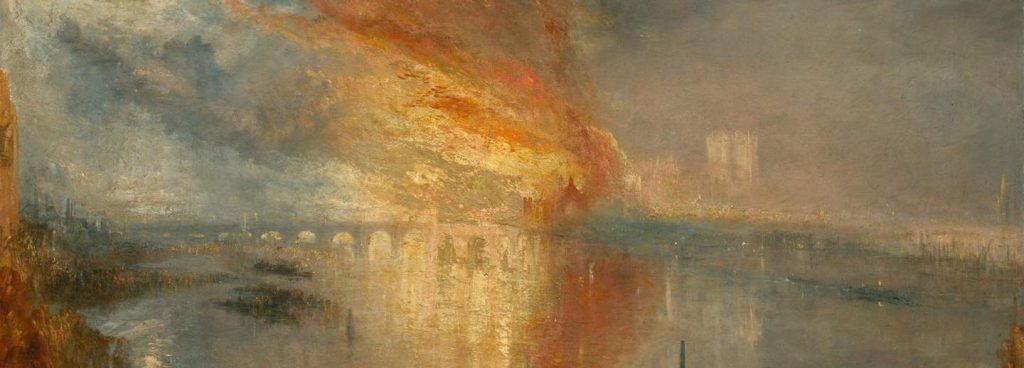 (sotto: JMW Turner The Burning of the Houses of Lords and Commons, October 16, 1834 1835 © Cleveland Museum of Art)